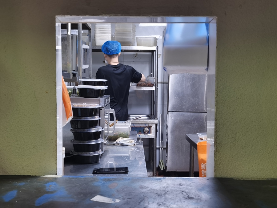 在外卖取餐窗口可以看到后厨情况,无堂食餐饮店一般面积在十几平方米至三十几平方米。 陈玺撼摄