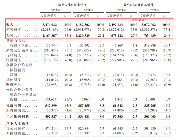 研发投入上,万帮能源于2023年及2024年以及截至2024年及2025年9月30日止九个月,研发开支分别为人民币235.1百万元、人民币343.9百万元、人民币227.9百万元及人民币247.0百万元(占总收入的8.0%)。