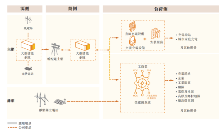 产品方面,产品组合涵盖智能充电、多场景微电网及大型储能领域的设备及服务。其中: